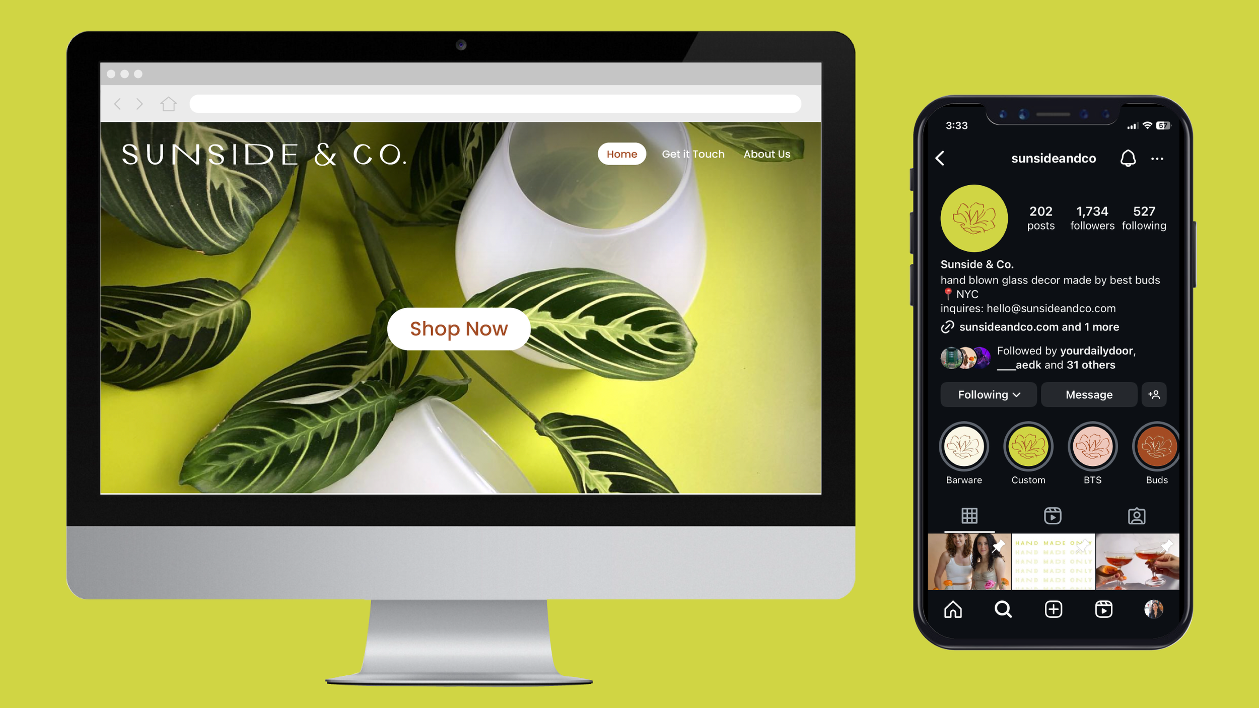 Project Details: Sunside & Co. is a small business creating hand-blown glassware and floral arrangement, based in Sunnyside, Queens, New York City. I developed a crisp and contemporary brand identity system for them, creating a flexible logo, color palette, typographical guidance, and overall art direction. Drawing inspiration from their homebase in Sunnyside and the elegant products they create, I used clean lines, bright colors, and refined typography to appeal to both high-end clientele and everyday customers.