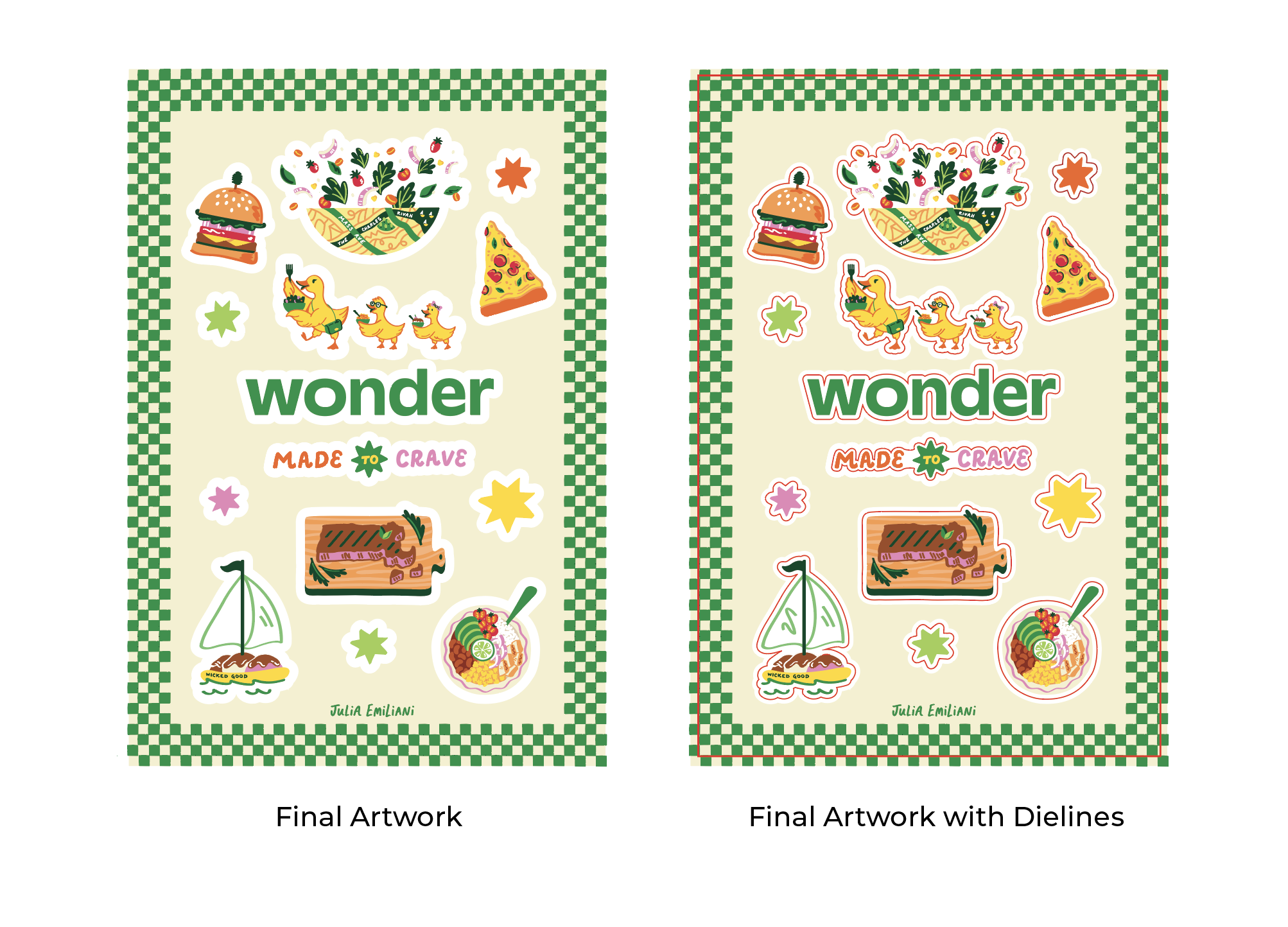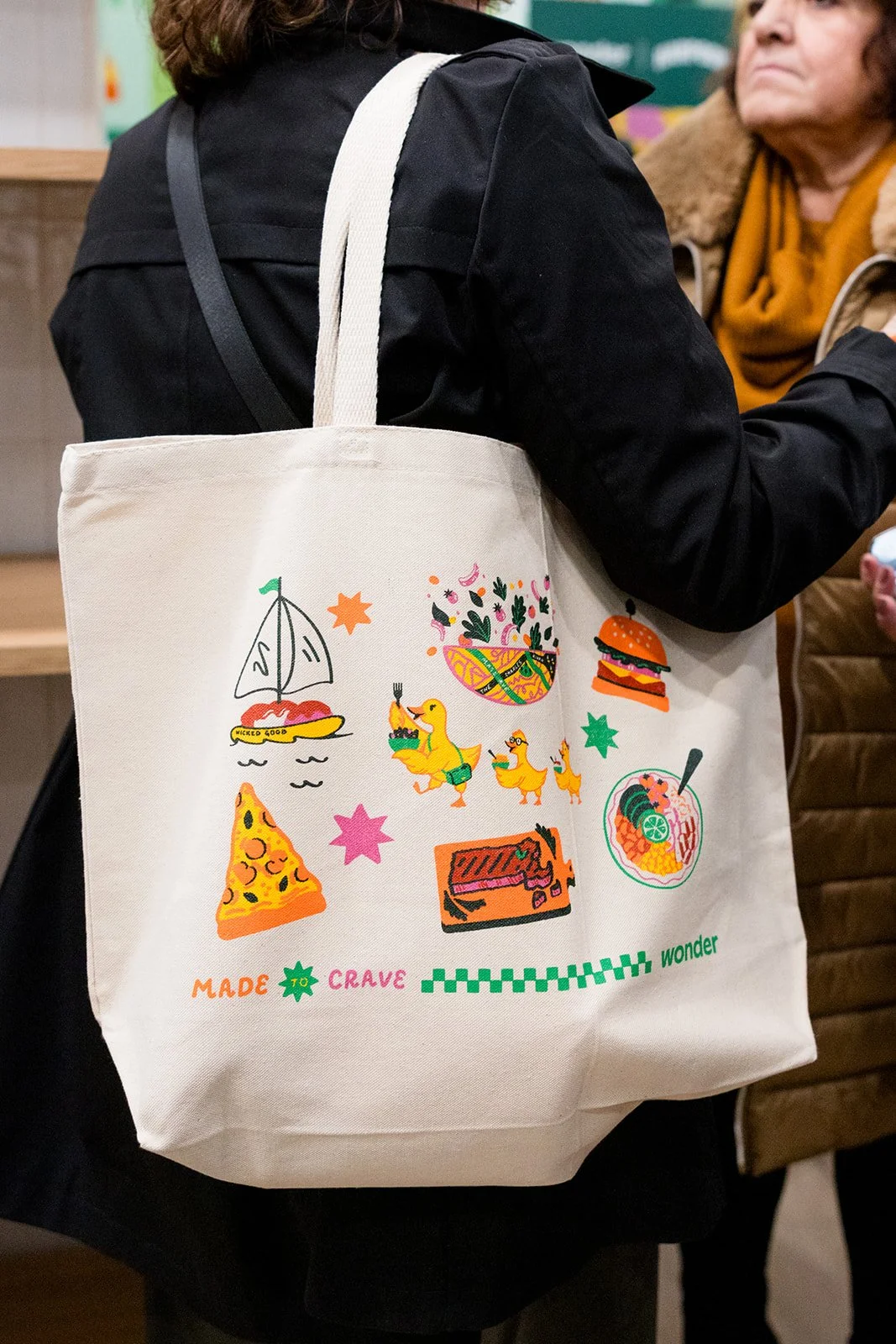 Project details: In addition to creating mural artwork for Wonder’s Boston area stores, I also lead the design of merchandise used as giveaway items for the openings of each location! To ensure a cohesive feel with the mural artwork, I used elements of the mural and formatted the artwork to meet the specifications of each printing process. The result was engaging, family-friendly merchandise which generated excitement and fostered high brand affinity.