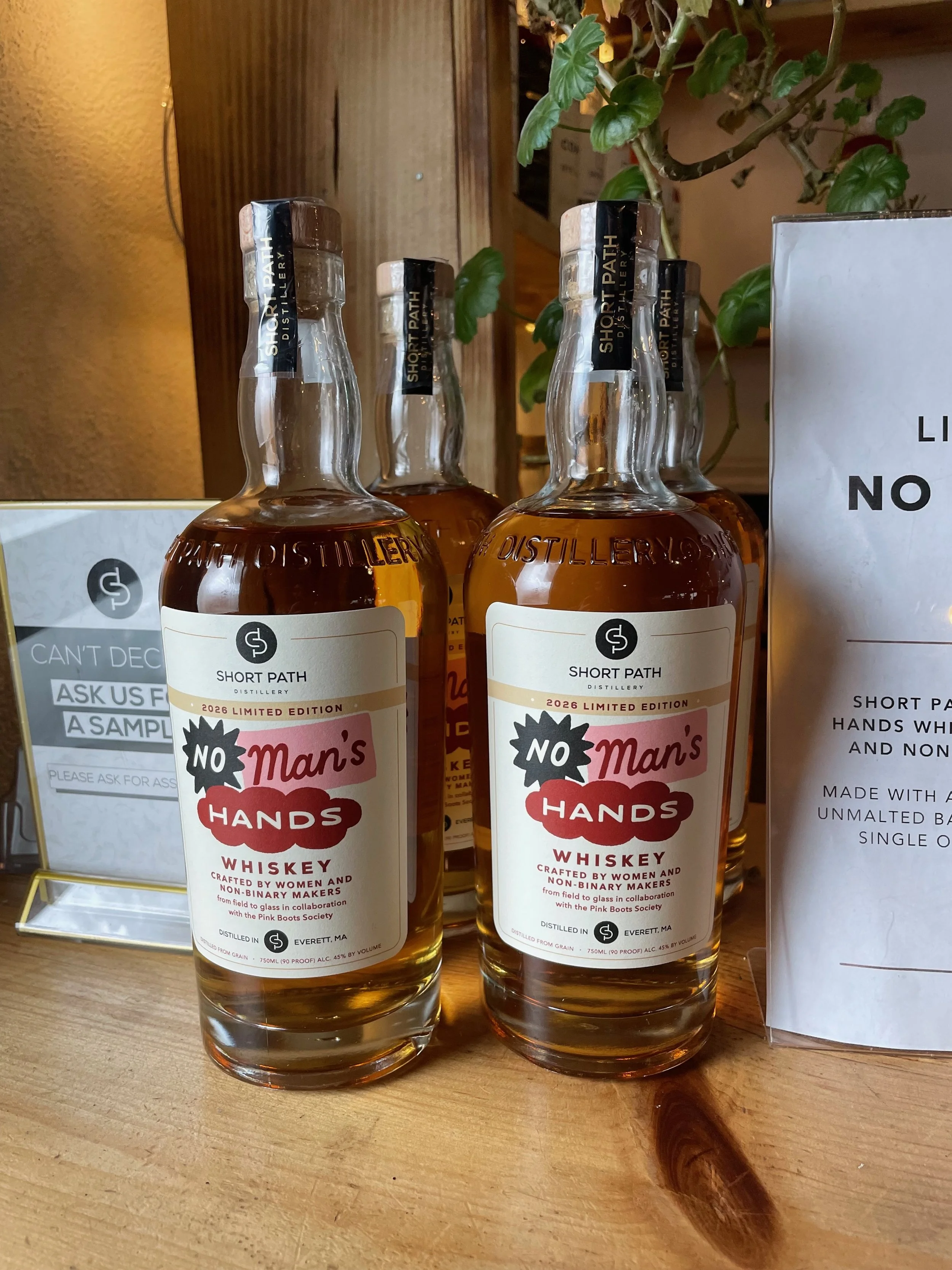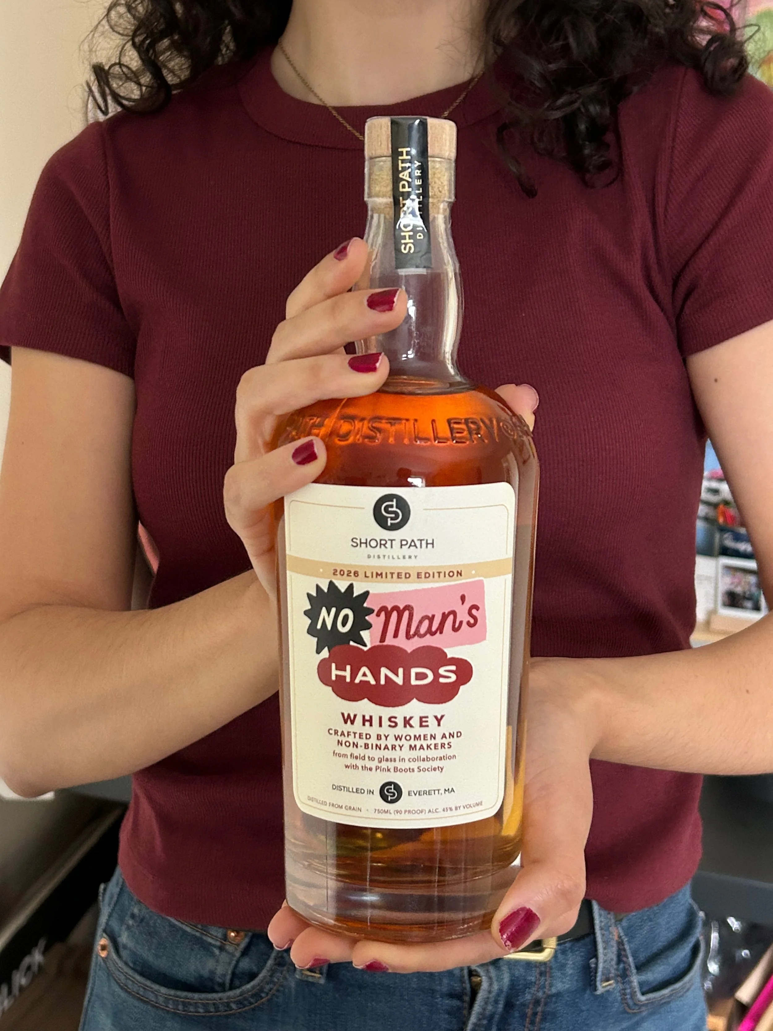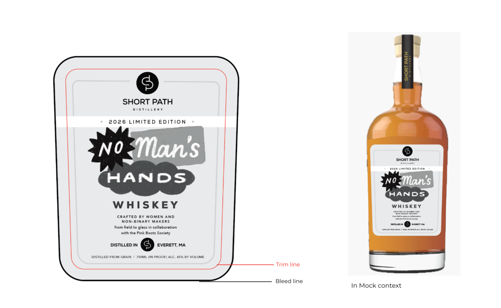Project details: I worked with Short Path Distillery on a limited edition label design their No Man’s Hands Whiskey — a spirit made entirely by women and non-binary makers from grain to glass, in collaboration with Pink Boots Society. The first, and possibly only whiskey of its kind! I worked with the team to create a clean, unique label design that captures the collaborative, inclusive nature of the spirit, while also feeling distinct and different from their typical product line. I created a hand lettered title housed in expressive, overlapping shapes to help convey the collaborative nature. The colors add some pop, help the bottle feel distinct from the other offerings and play into the conceptual themes.